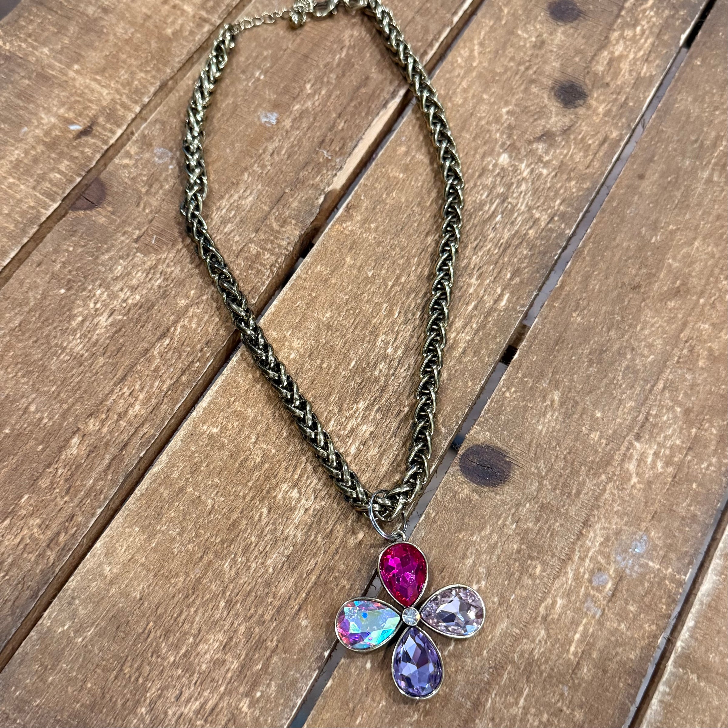 ATG LIVE Gold New Flower Necklaces- Pink Multi