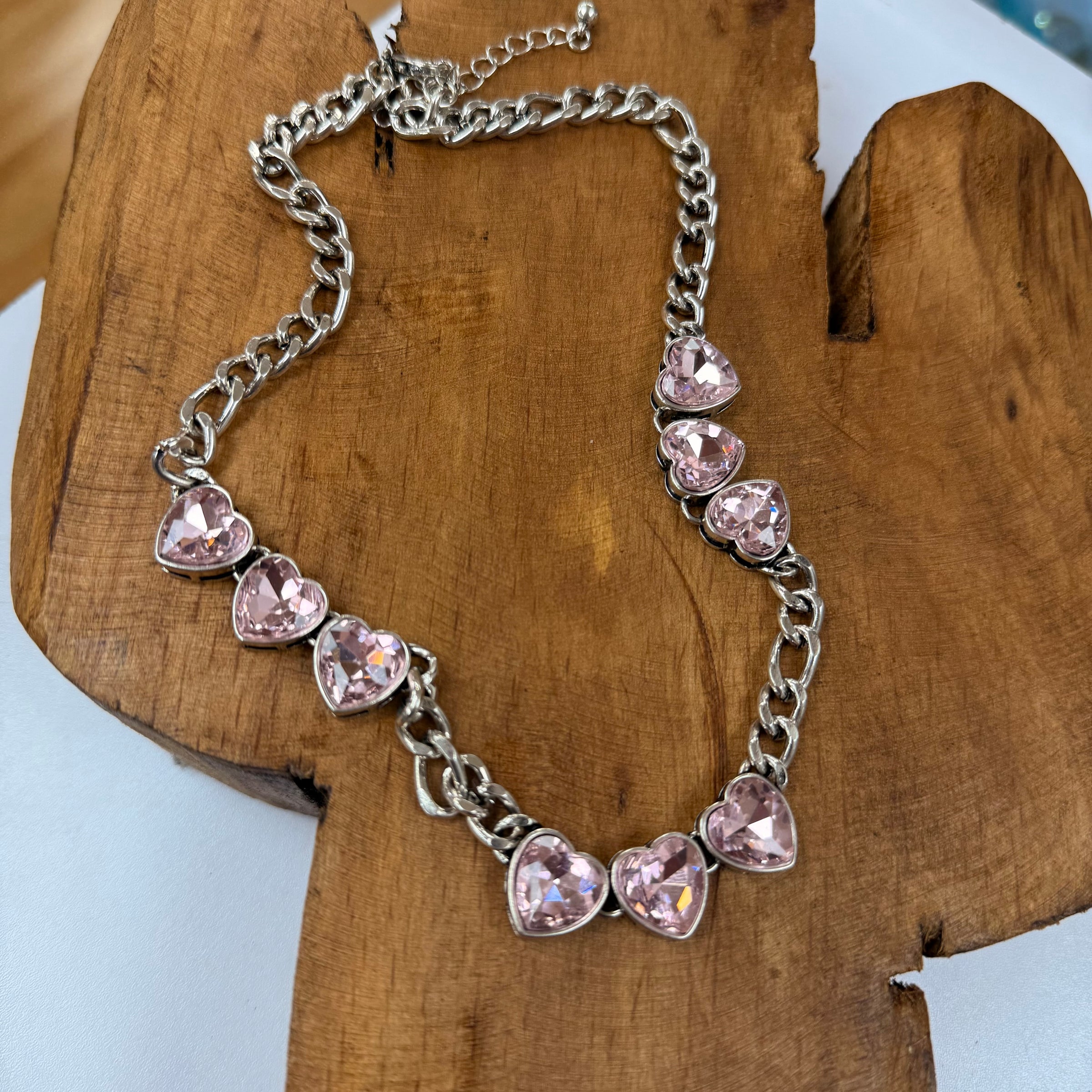 ATG Live Silver Triple Heart Necklace-Light Pink