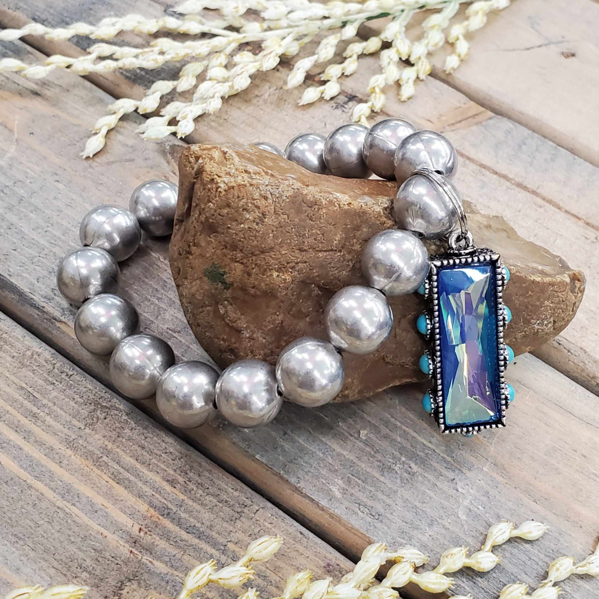 Blue AB Rectangle Stone Stretch Bracelet