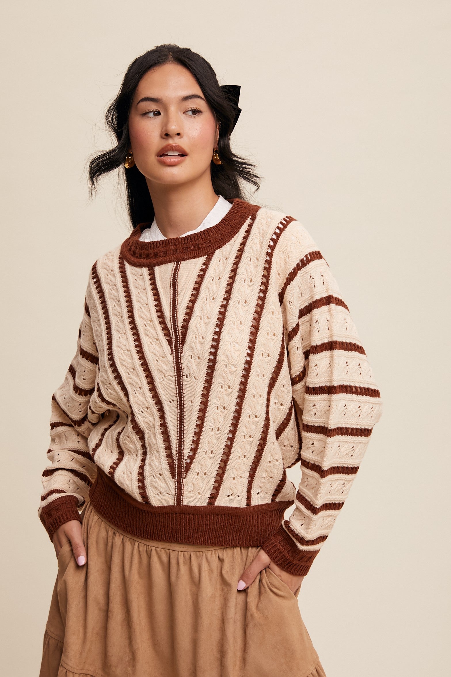 Listicle V Stripe Knit Sweater