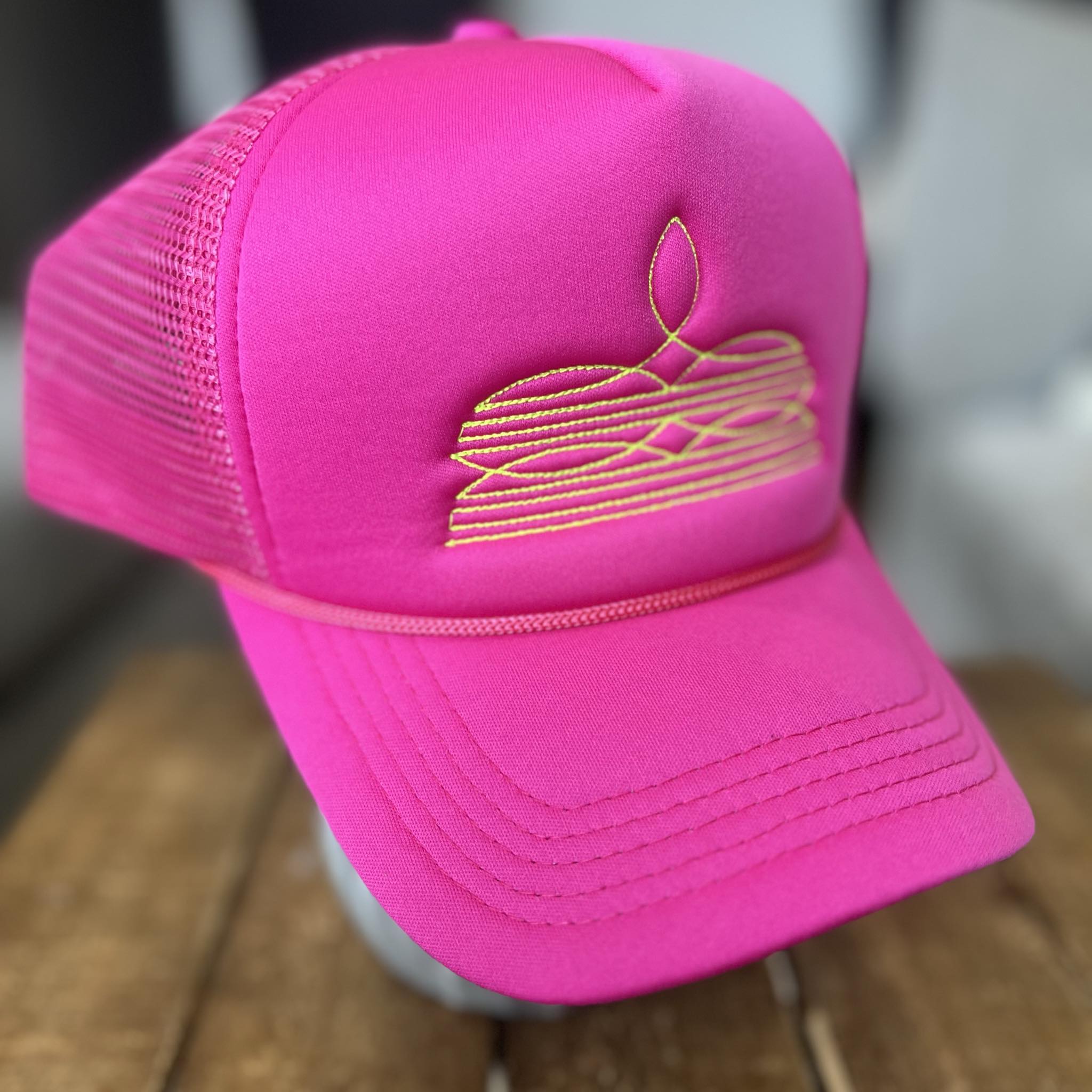 Western Stitch Fuchsia with Yellow Trucker Hat
