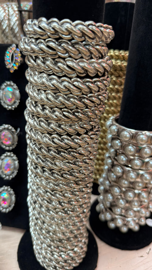 ATG Silver Medium Twist Weave Stretch Bracelet