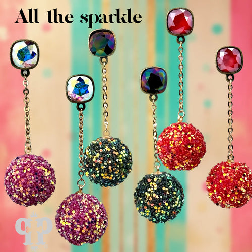 PP Glitter Mesh Bead with Austrian Crystal Earrings