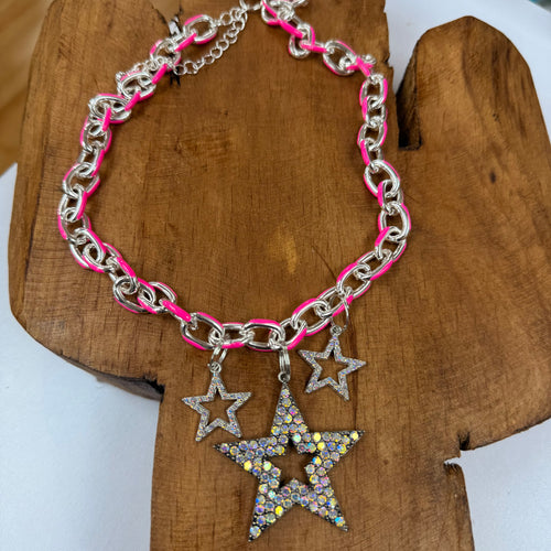 ATG Live Silver Triple Heart Necklace-Light Pink