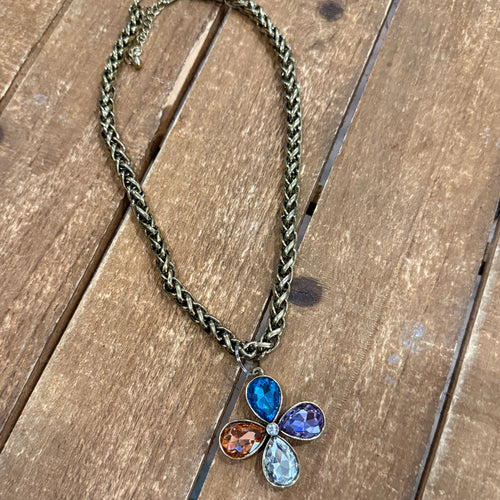 ATG LIVE Gold New Flower Necklaces- Blue Multi