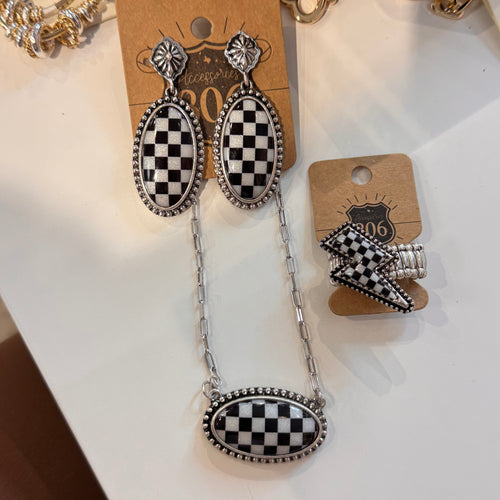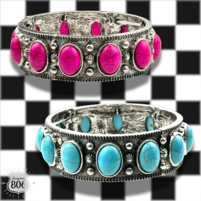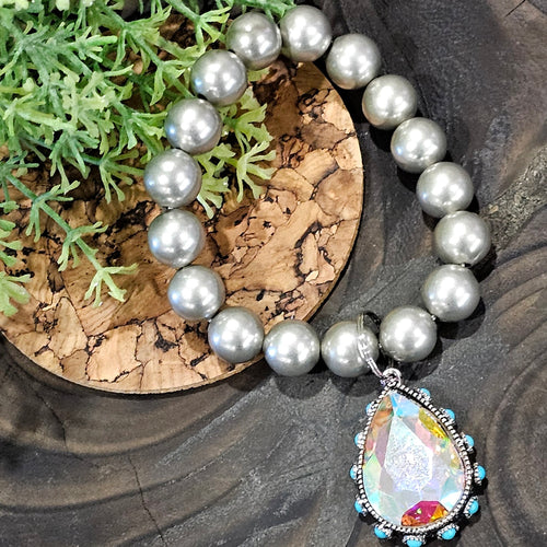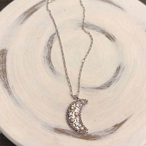806 Western oval rhinestone pendant on burnished silver bead necklace