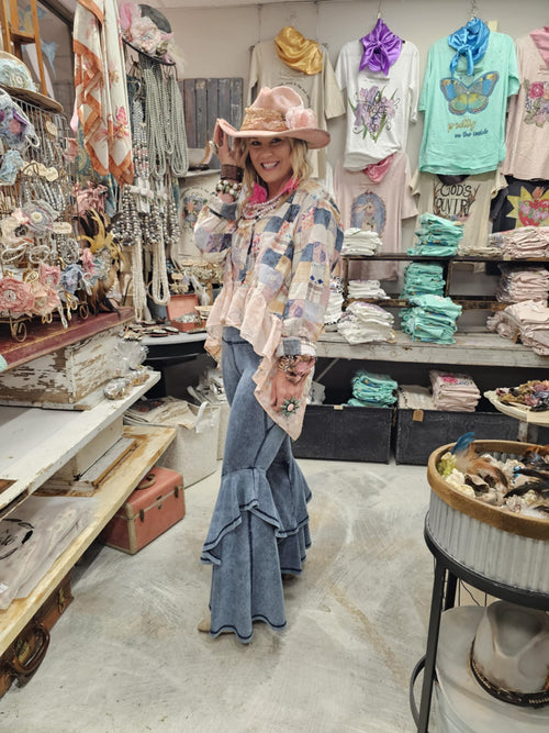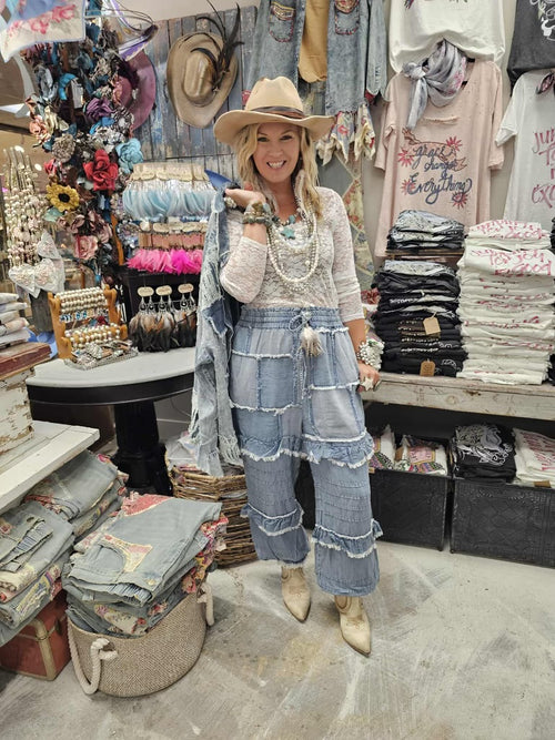 ARB LIVE BLACK VELVET RUFFLE PANTS