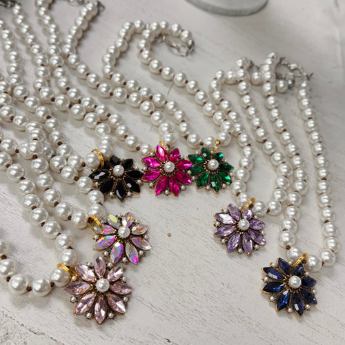 ATG Bling Flower w Pearl on Pearl Necklace