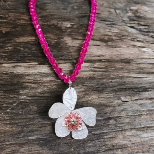 ATG Blossom Necklace- Fuchsia Bead/ Light Pink