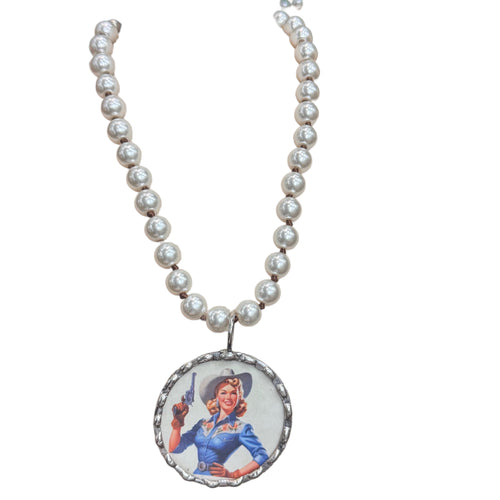 ATG BLUE SOLDERED COWGIRL JAYNE MANSFIELD NECKLACE