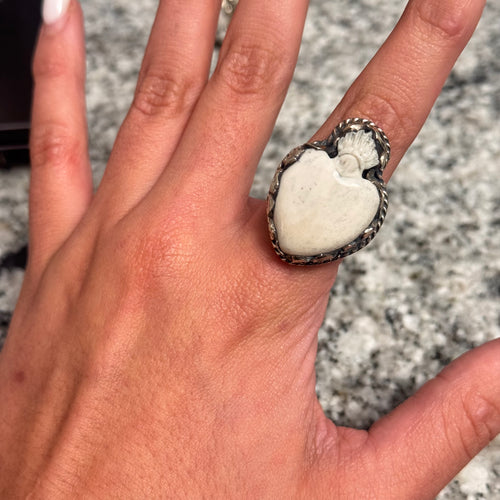 ATG DB Tibet Carved Bone Heart Ring