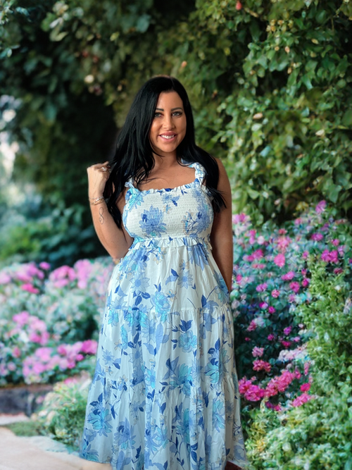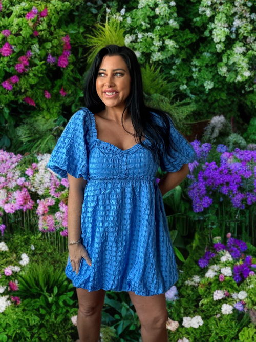 Heyson Blue Gingham Fabric with Ruffle Detail Dress