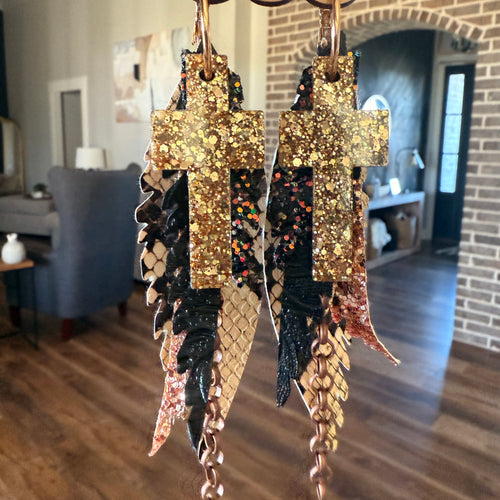 Randan Live Gold/Black/Rose Gold Cross Earrings