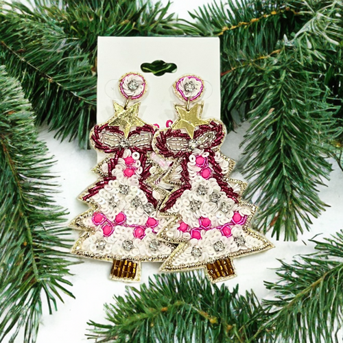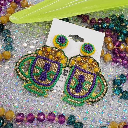 PP Lt Silk Tan Swirl Triple Tier Gold Earrings