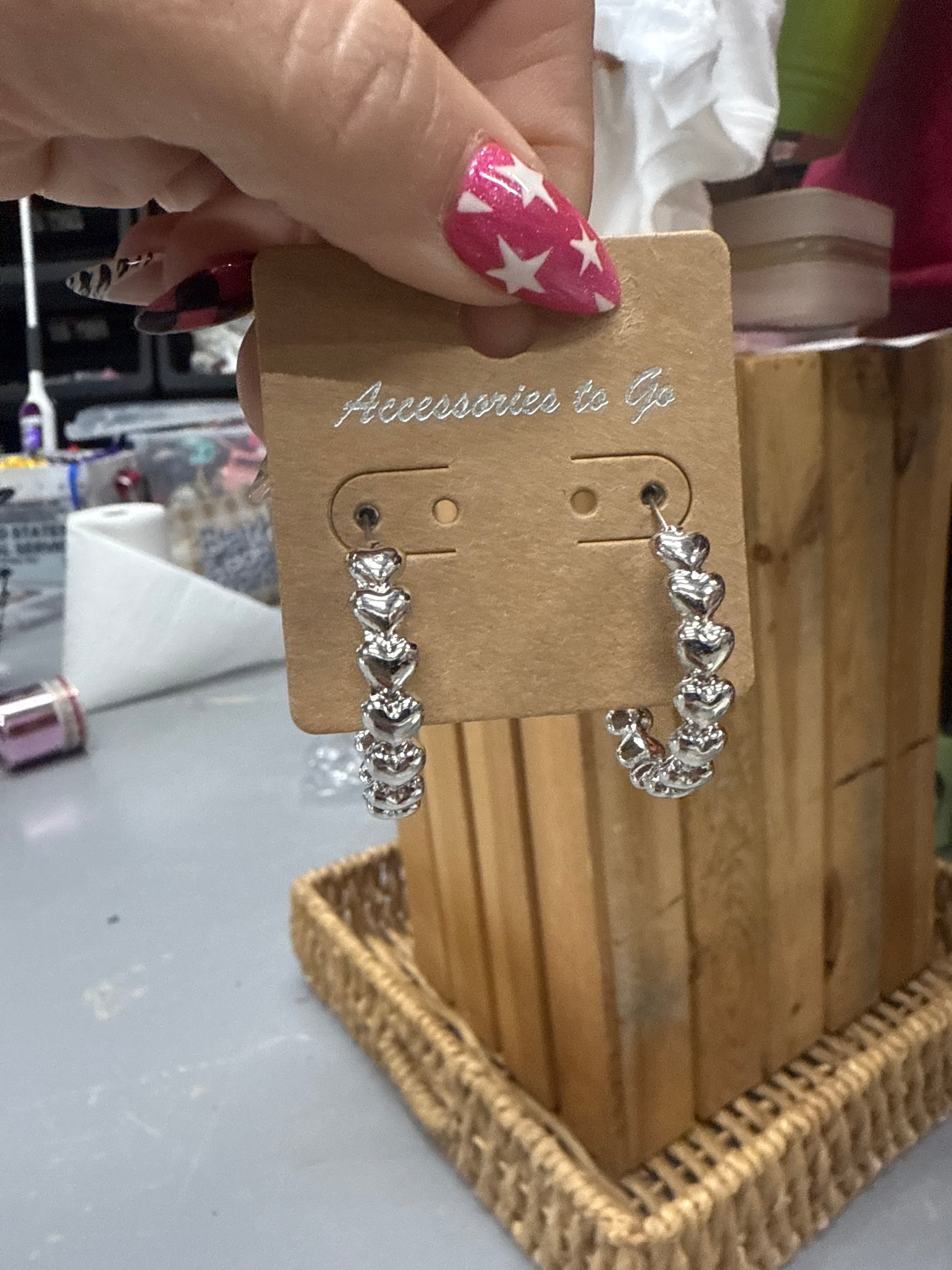 ATG Lightweight Silver Heart Hoops