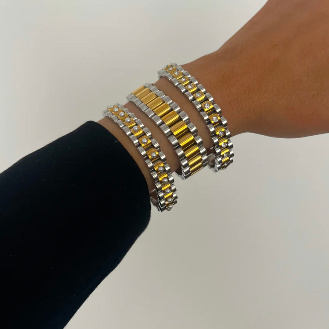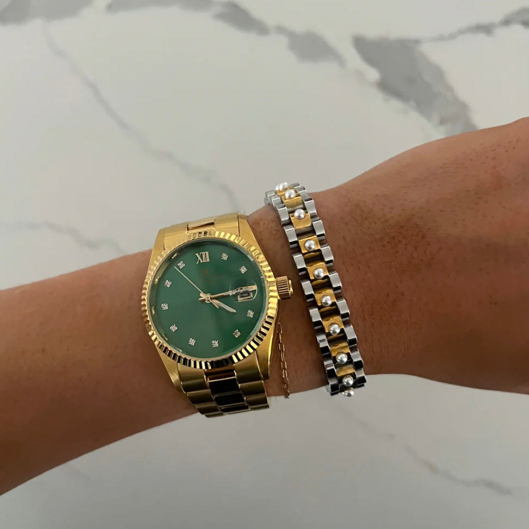 CHANSUTT PEARL TWO TONED WATCH BAND BRACELET