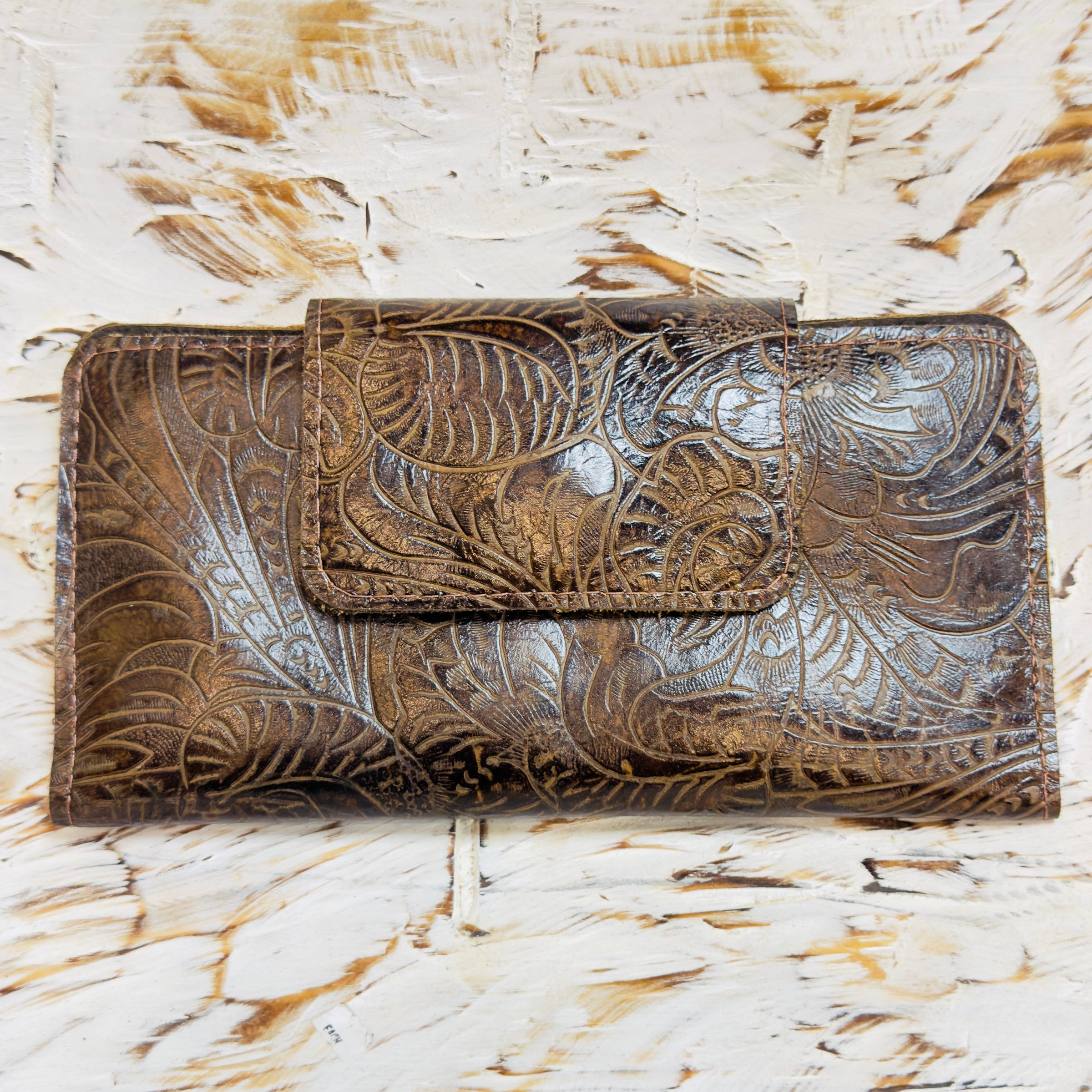 KIG Shiny Dark Brown Floral Fold Over Wallet