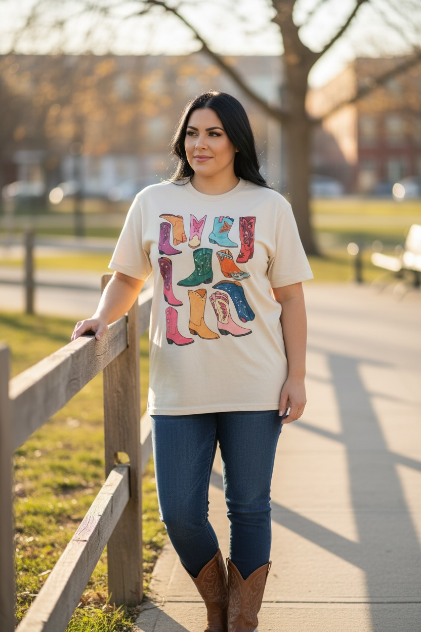 O&O Colorful Boots Bling Tee