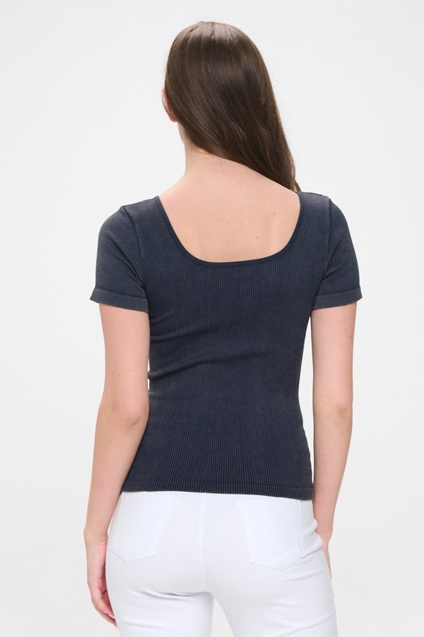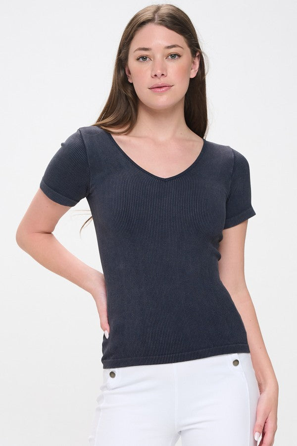 Reversible Short Sleeved Stonewashed Ribbed Tank