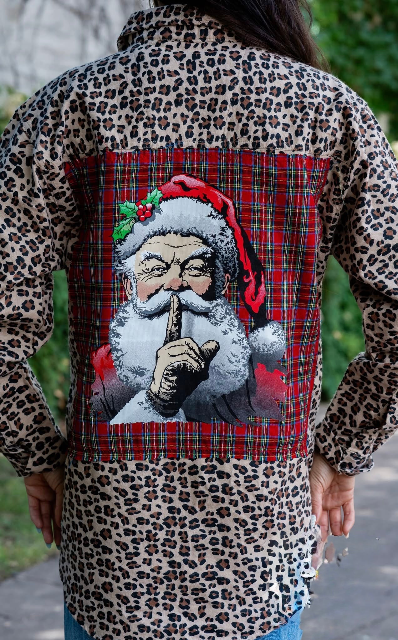 Shh Santa Leopard Flannel Top