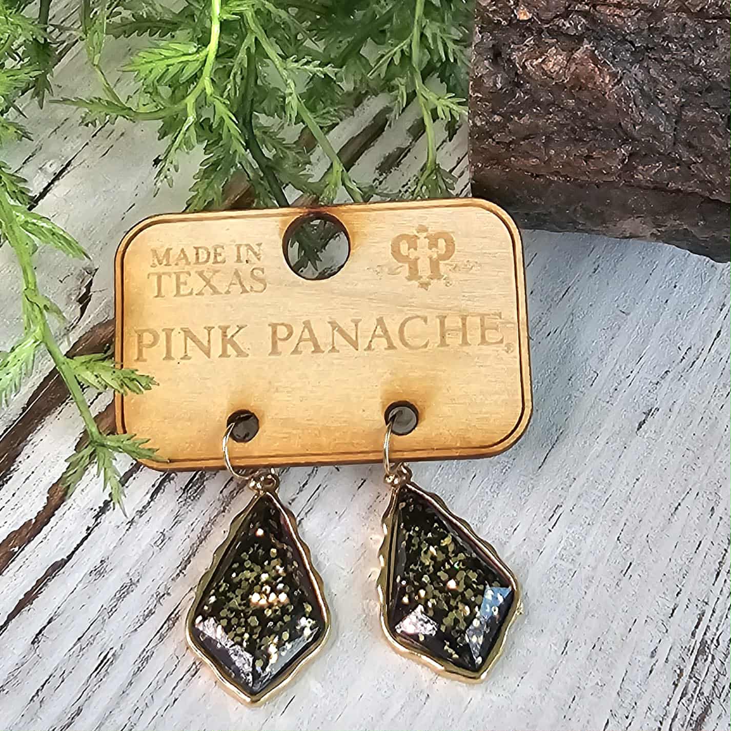 PP Black/Gold Glitter Teardrop Fish Hook Earrings