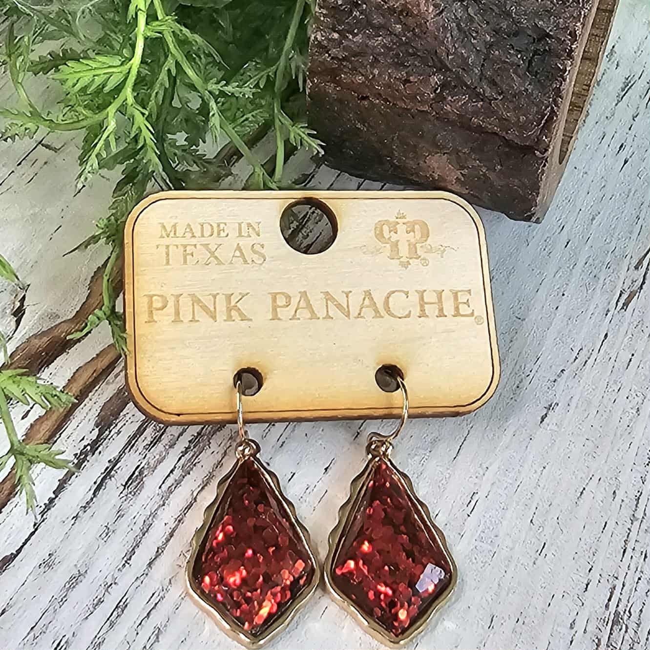 PP Red/Gold Glitter Teardrop Fish Hook Earrings