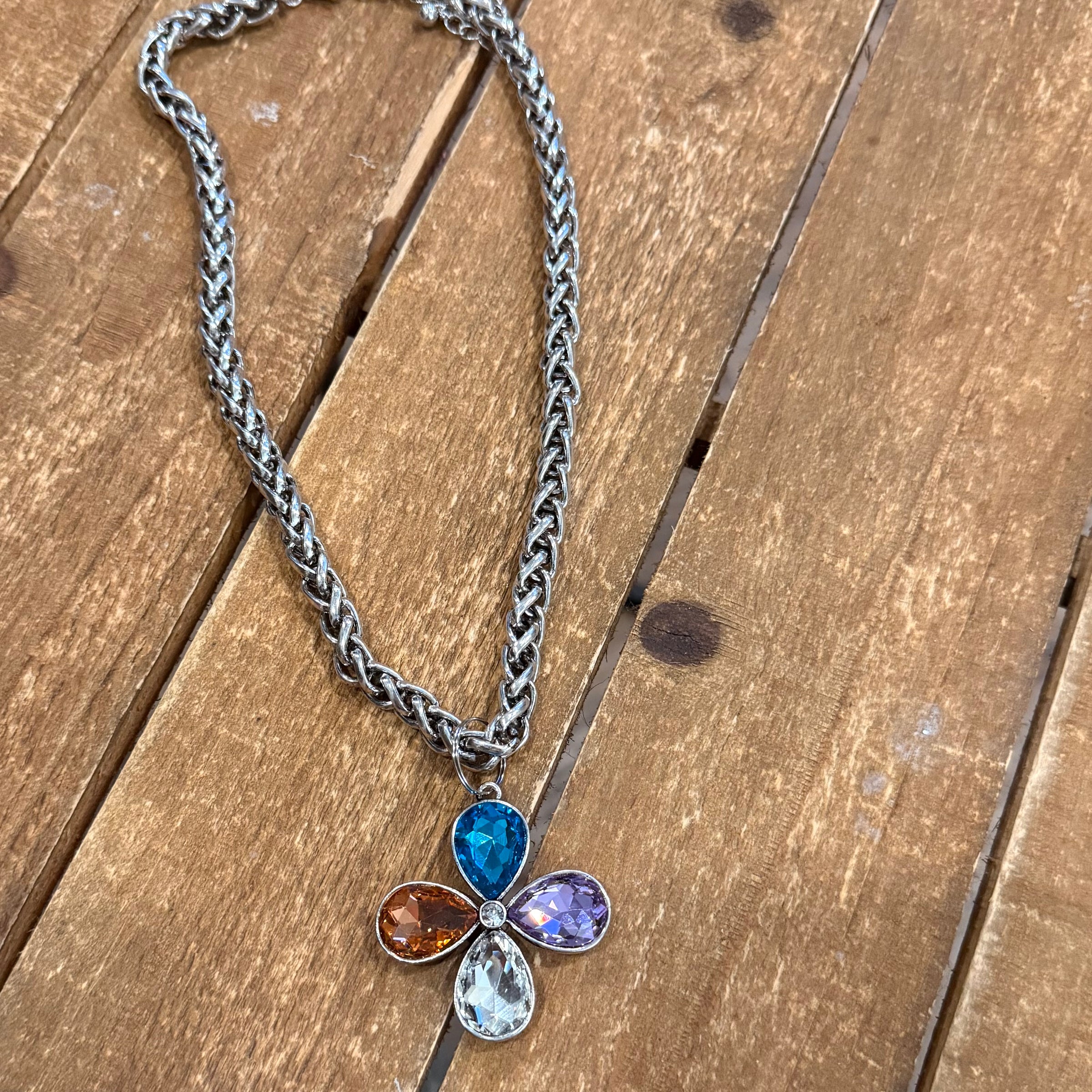 ATG LIVE Silver New Flower Necklaces- Blue Multi