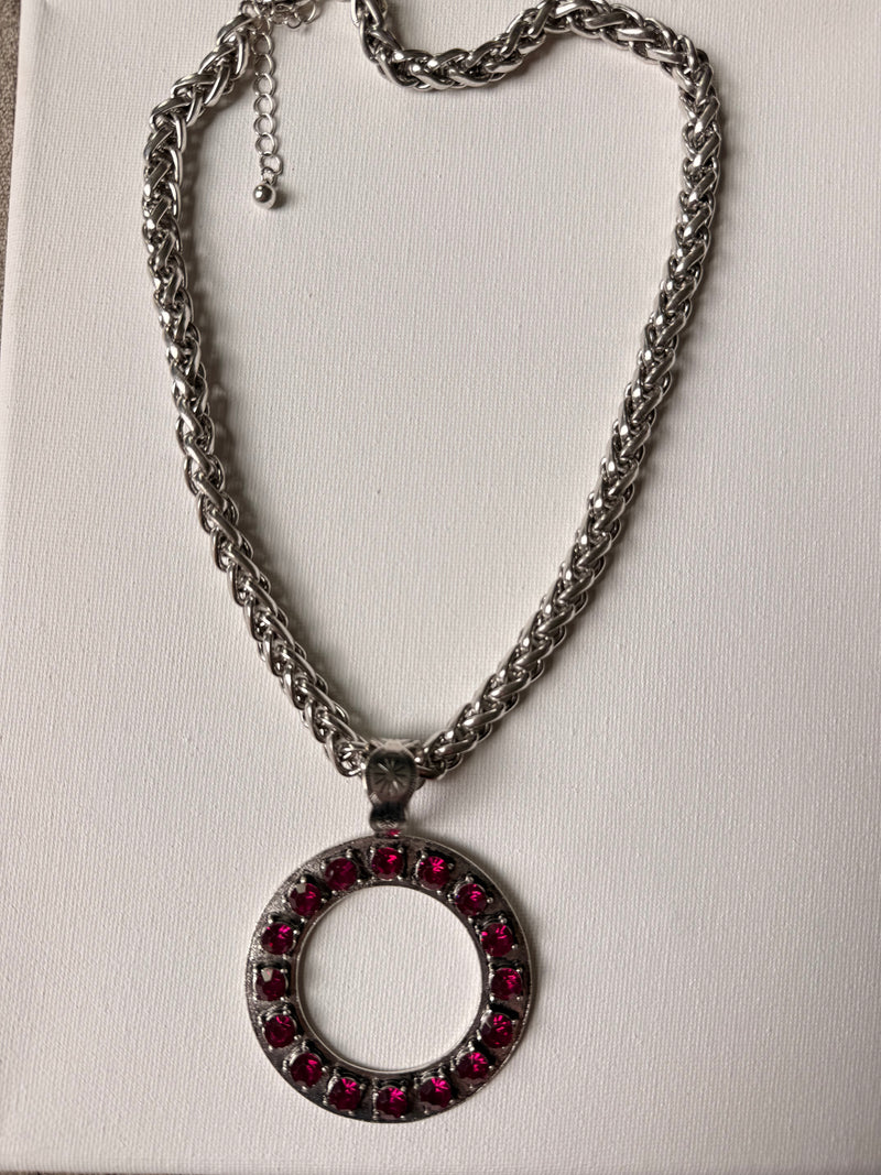 ATG Silver Circle Necklace-Pink