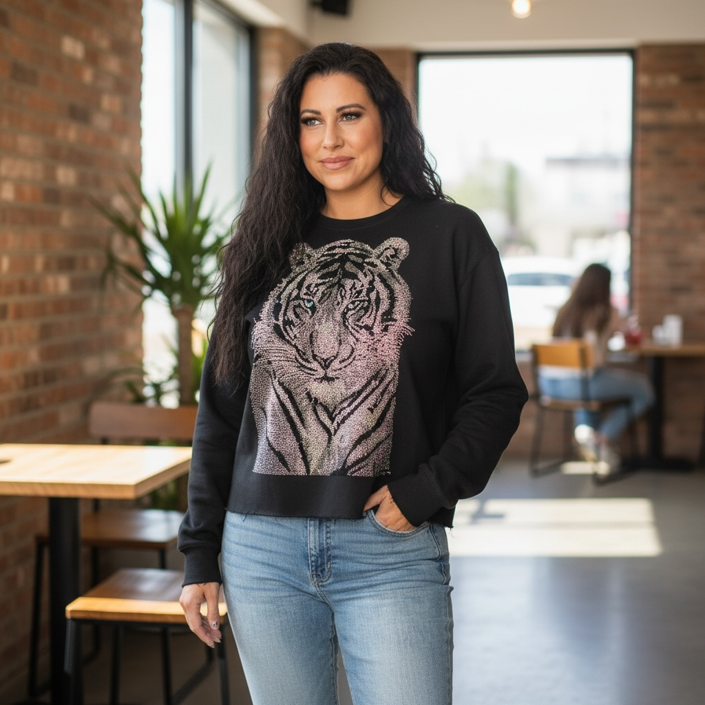KIG Black Bling Tiger Mom Crop Sweatshirt