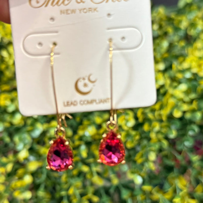 Mini Pink AB Teardrop Kidney Wire Earrings