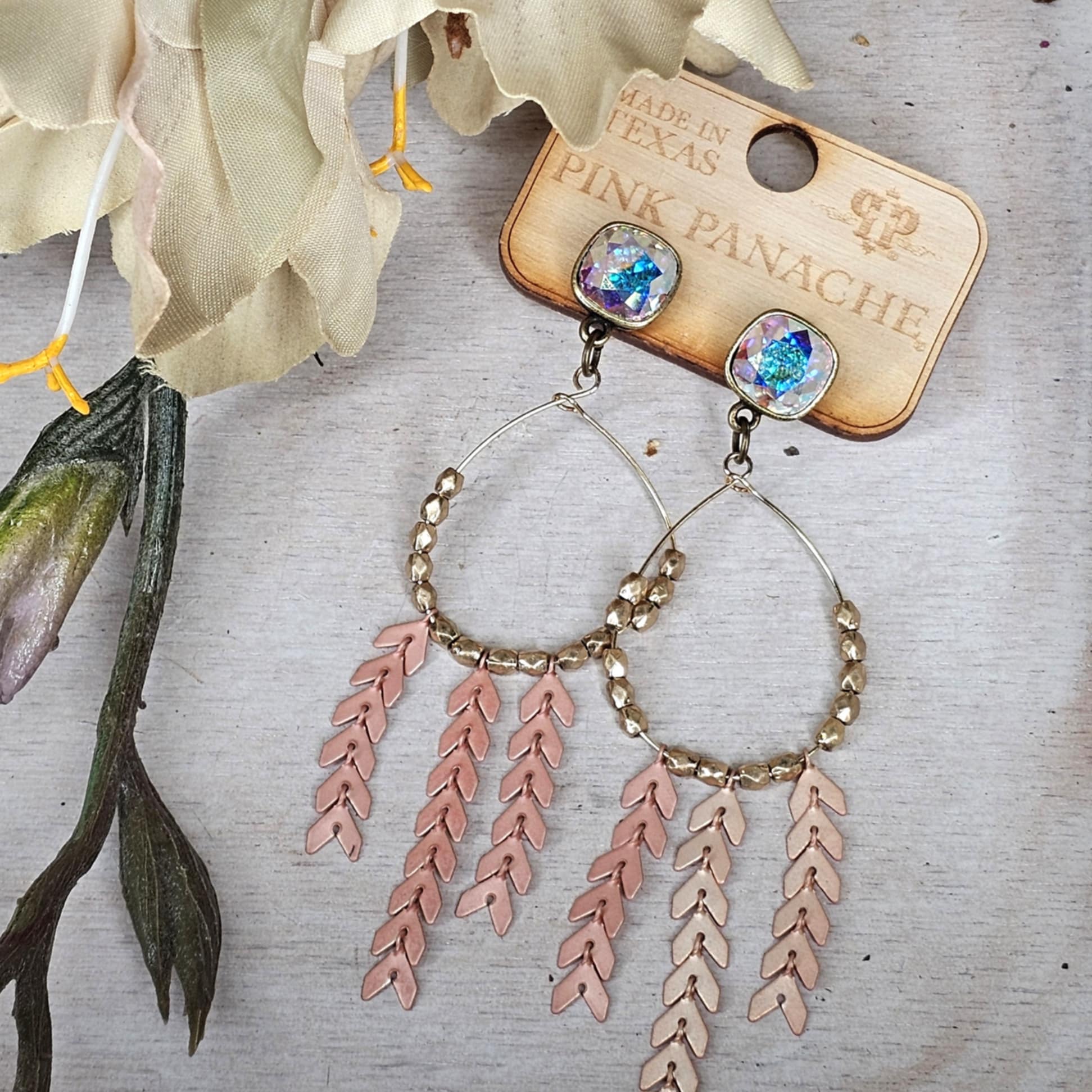 PP AB Gold Teardrop Rose Gold Dangle Earrings