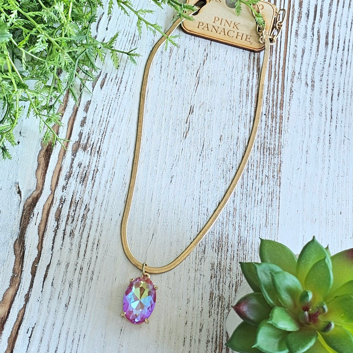 PP AB Oval Gold Herringbone Necklace