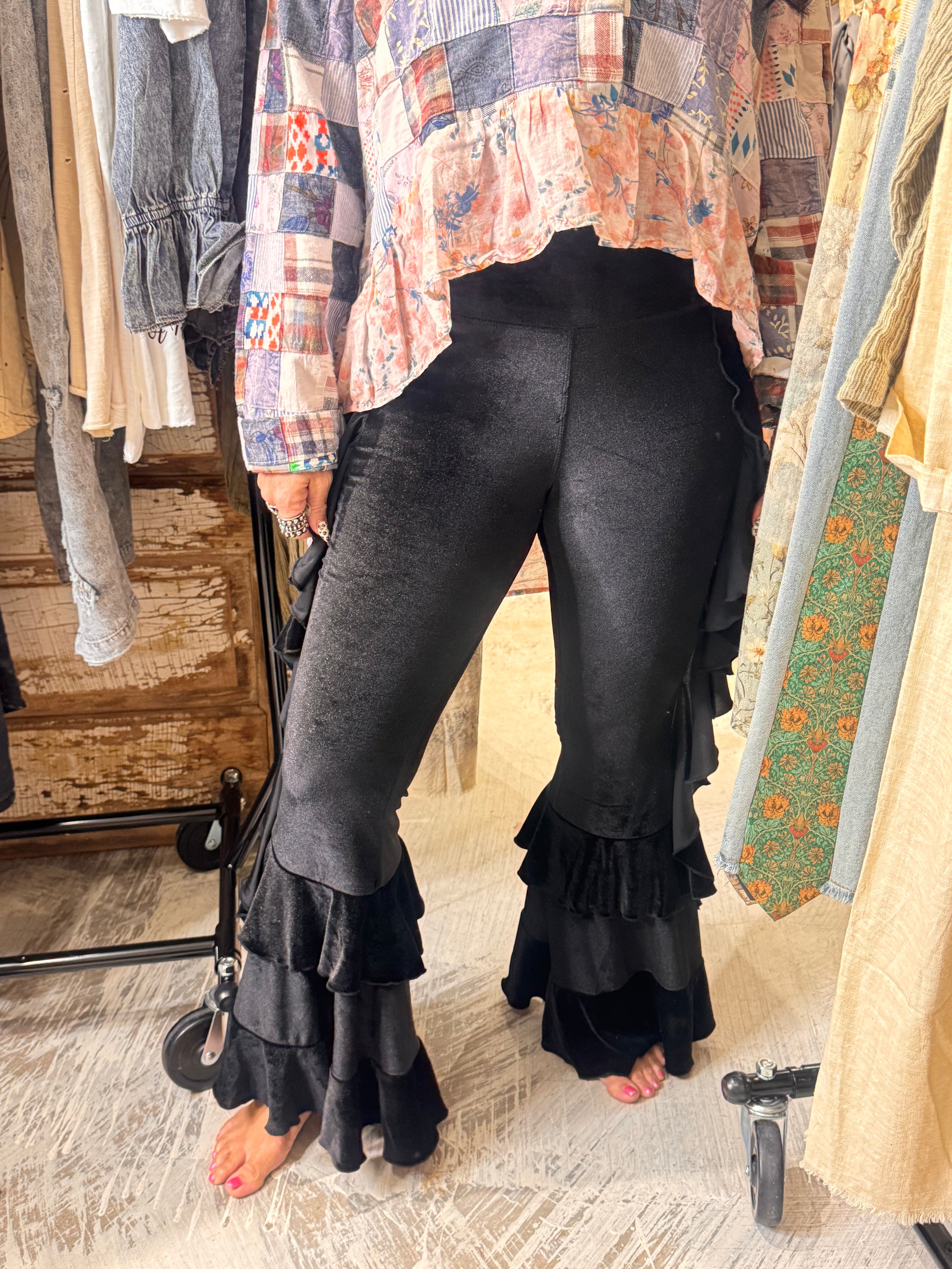 ARB LIVE BLACK VELVET RUFFLE PANTS